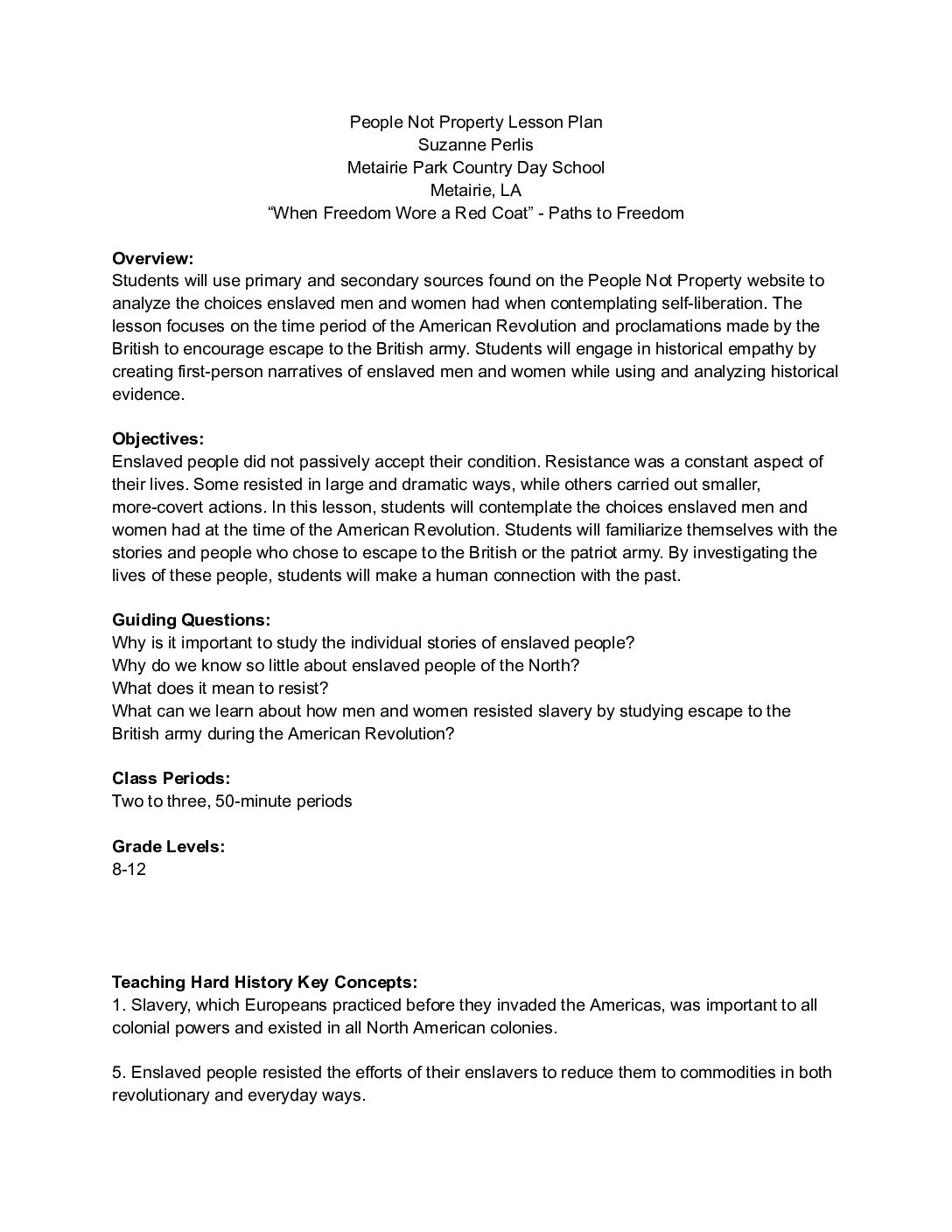 This lesson integrates the Choosing Resistance section of People Not Property with a discussion of enslaved people in North America during the American Revolution.