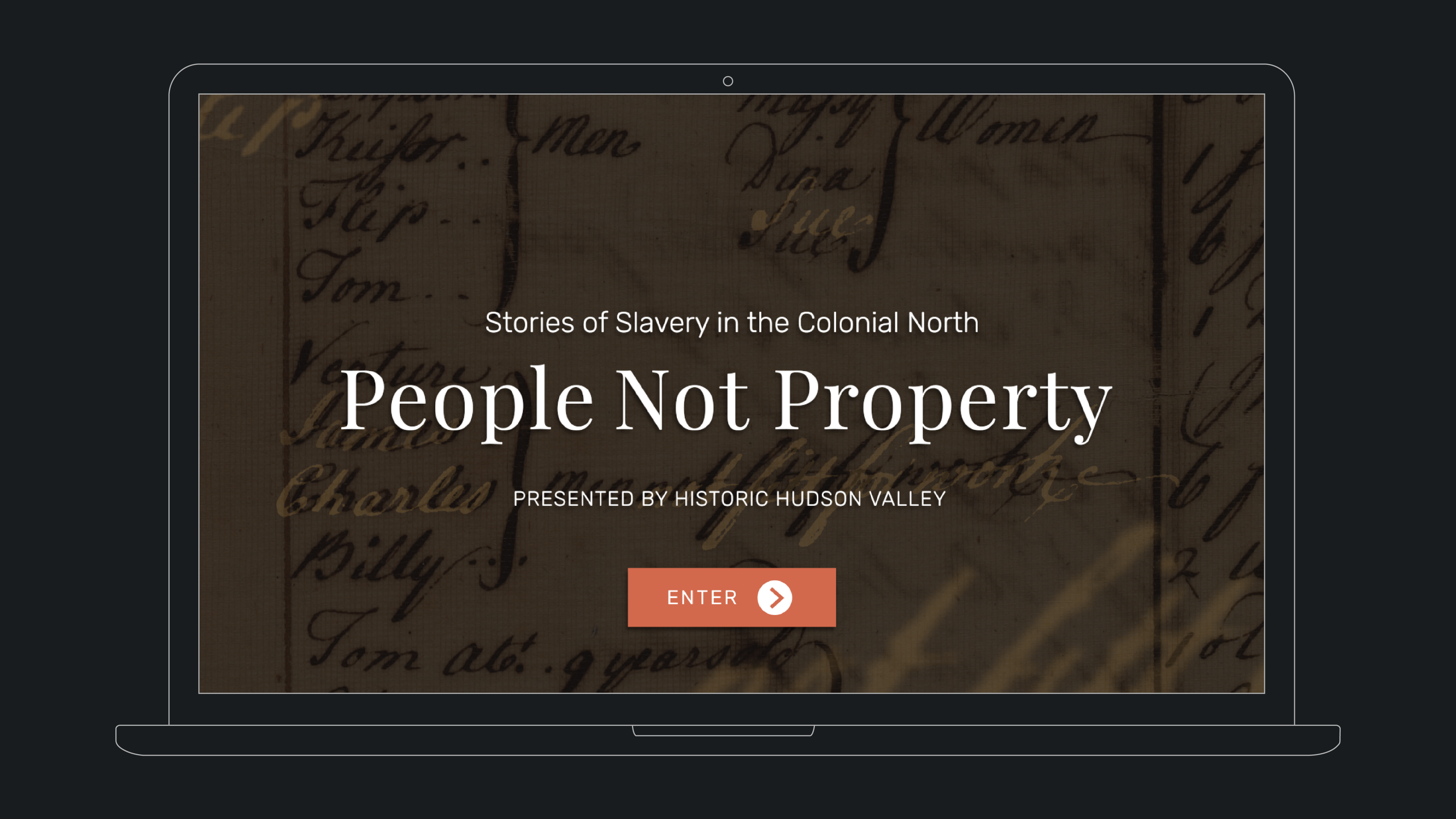 Historic Hudson Valley announces the launch of a new, groundbreaking interactive documentary website revealing the history of slavery in the colonial North. People Not Property: Stories of Slavery in the Colonial North is a mix of original videos, interviews, reenactments and infographics, as well as photos, illustrations, and hundreds of artifacts and documents that tell the wrenching stories of America’s history of slavery in the northern colonies, from the Middle Passage to life in the American colonies.